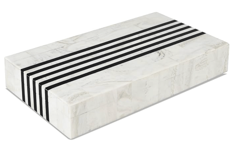 are an easy way to add both function and personality to a space. Decorative boxes conceal everyday clutter, trays create intentional groupings, candles add warmth and ambiance, and tribal masks introduce depth, texture, and a collected, global feel. Stick to neutral tones, clean lines, and tactile finishes to keep these accents feeling curated rather than cluttered.